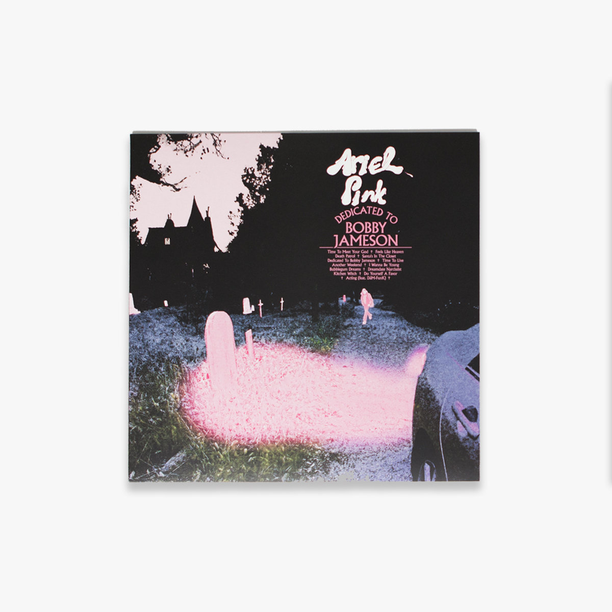 Dedicated to Bobby Jameson begins at the end and ends at the beginning. “We follow the protagonist through a battery of tests and milestones, the first of which sees him reborn into life out of death,” Pink explains, referencing the opening track “Time To Meet Your God.” “From there, he seesaws his way between the innocent love and the rock-solid edifice of childhood-worn trauma that together constitute his lifelong initiation into the realm of artifice and theatrical disposability.”